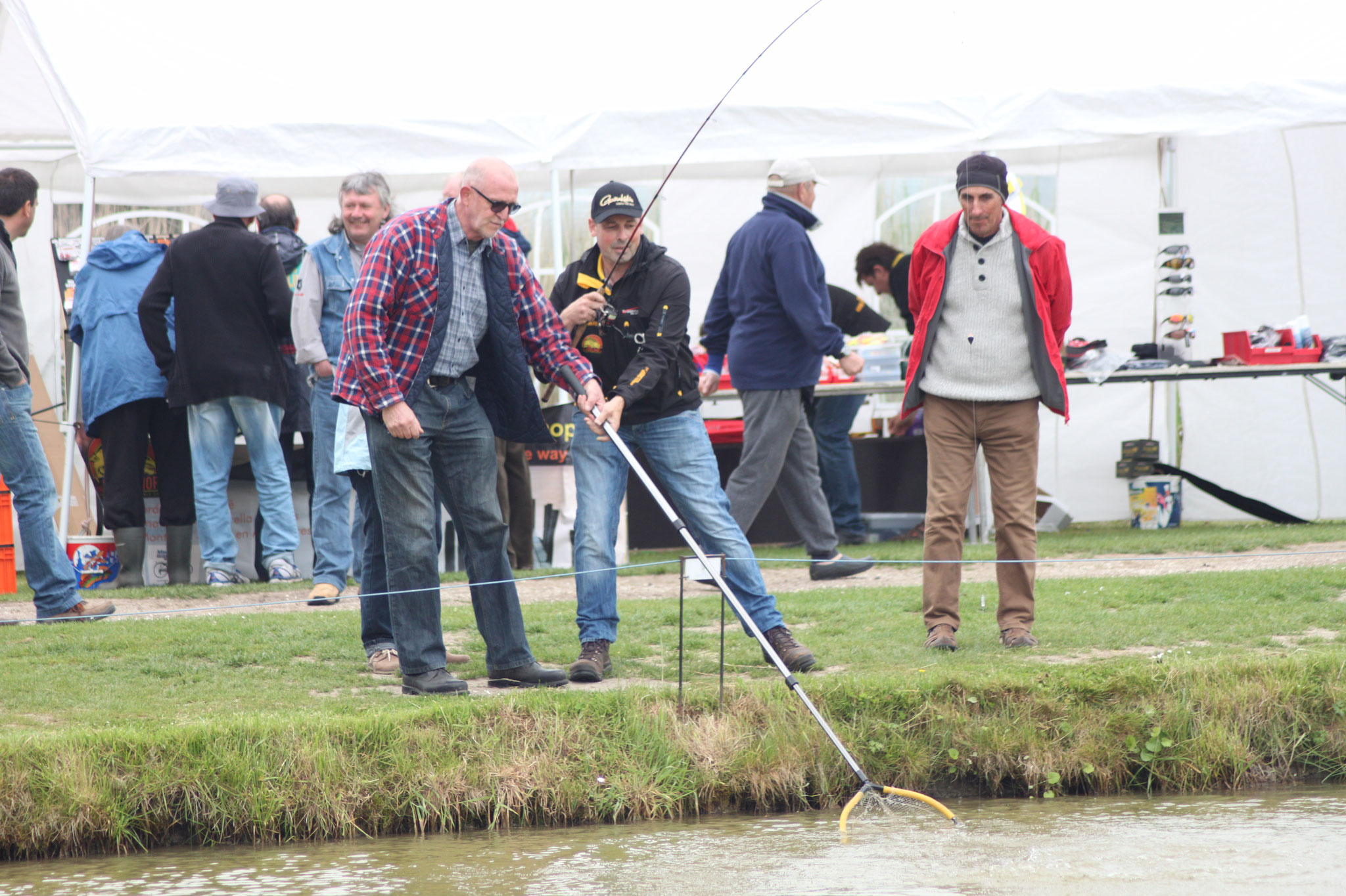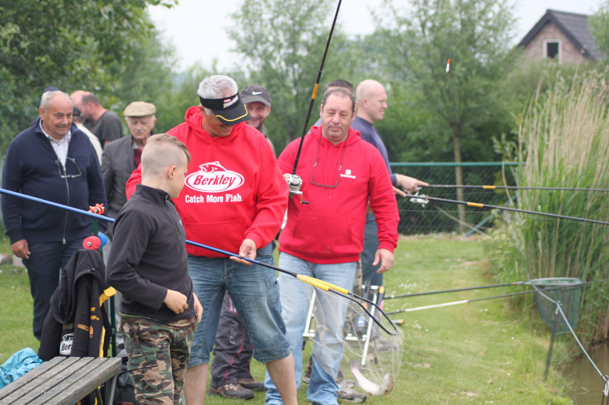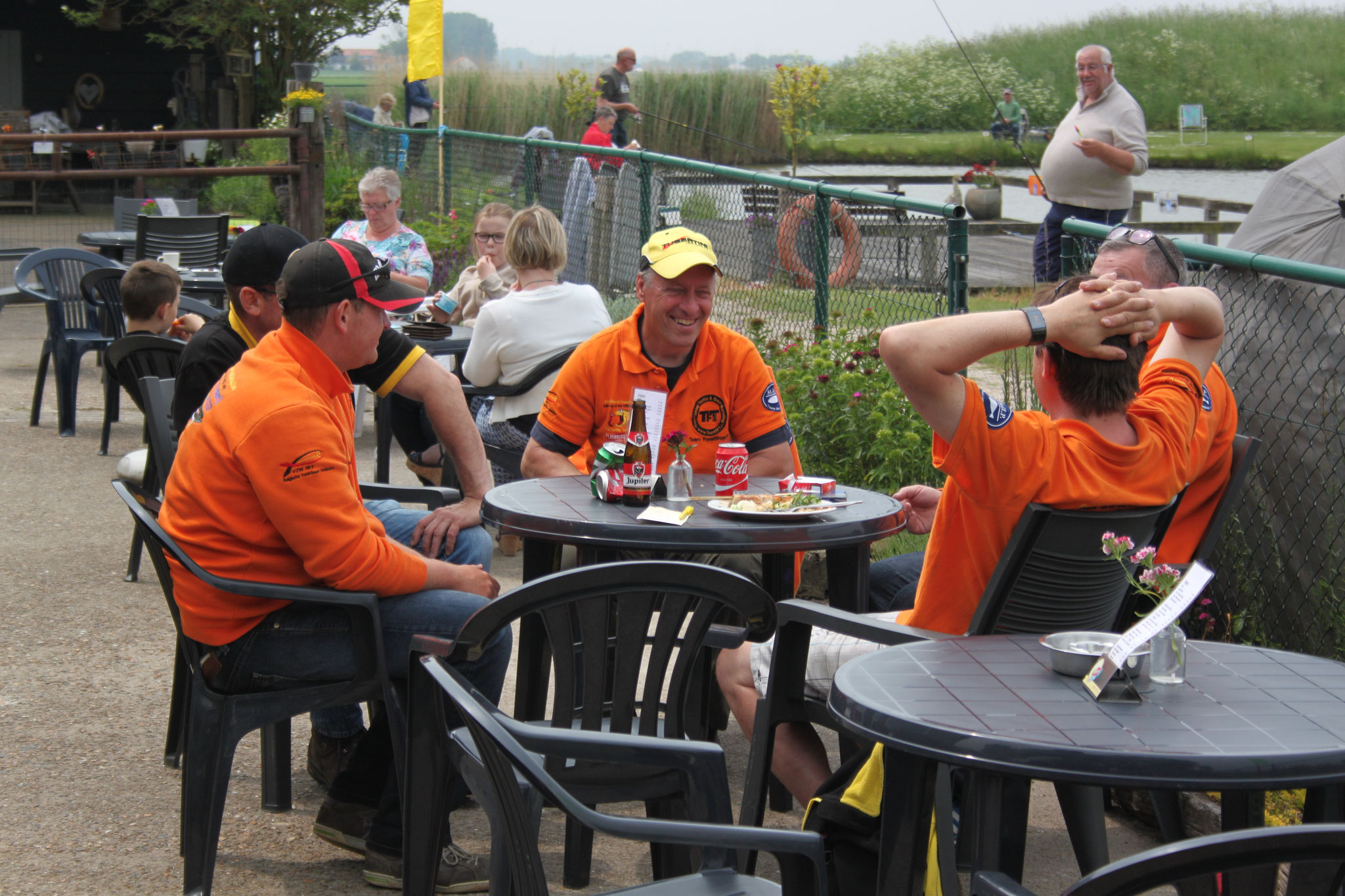 Tijdens de middag was er voor de deelnemers en het team een BBQ voorzien door de eigenaar en wij lieten het ons goed smaken.. ’s middags was het vrij vissen voor de deelnemers en wij gingen kijken hoe zij de technieken in de praktijk gingen brengen… super! Her en der werd er goed gevangen… af en toe toch nog maar een paar tips gegeven! einde van de middag betrok het zeer snel in de lucht en al gauw onweerde het… mensen gauw visspullen ingepakt en een enkele waagde zich nog aan de waterkant, maar het bleef gelukkig alleen bij veel regen…