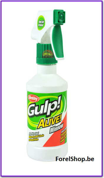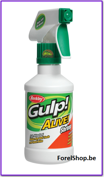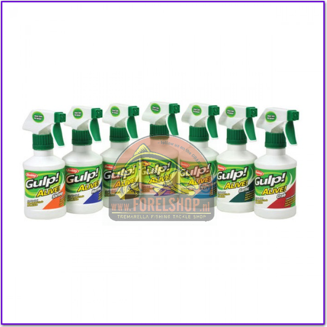 Berkley Gulp Alive heeft diverse geuren ontwikkeld en deze verpakt in een handige sprayvorm.. erg handig, geen geknoei en geen geur aan je handen… ook kids kunnen dit gebruiken… paar keer aas besprayen en weer inwerpen. Dit goedje in de fles is sterk geconcentreerd, dat een weinig maar nodig is.